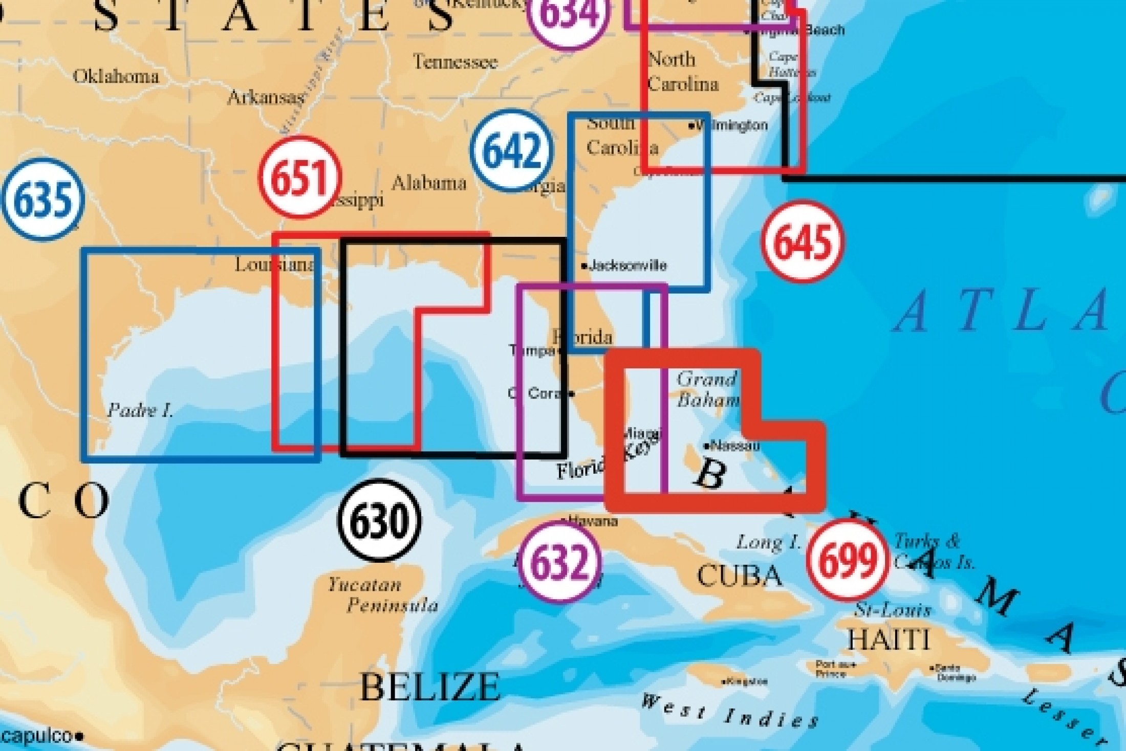 South Florida from Ft. Pierce to Tavernier including Cay Sal banks and the Bahamas down to Long island.