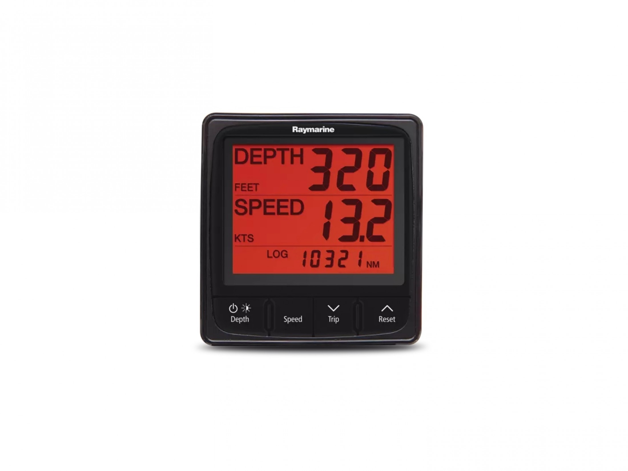 Combining both speed and depth data, the i50 Tridata instrument display is a multifunctional solution for displaying depth, speed, log, and water temperature information. The i50 Tridata display combines the features of its Depth and Speed siblings into a single, powerful, space-saving instrument. Tridata' s 3-line display is simple to read at a distance, with oversized readouts for critical depth and speed values. Its high-contrast LCD, large digits, and red backlighting combine to deliver superior visibility under all conditions. i50 instruments also support local and group dimming control. This makes it easy to adjust the brightness of multiple Raymarine products all at once. Simple push button controls provide easy access to all its data displays. i50 series instruments are the perfect combination of powerful performance, easy operation and rugged reliability.